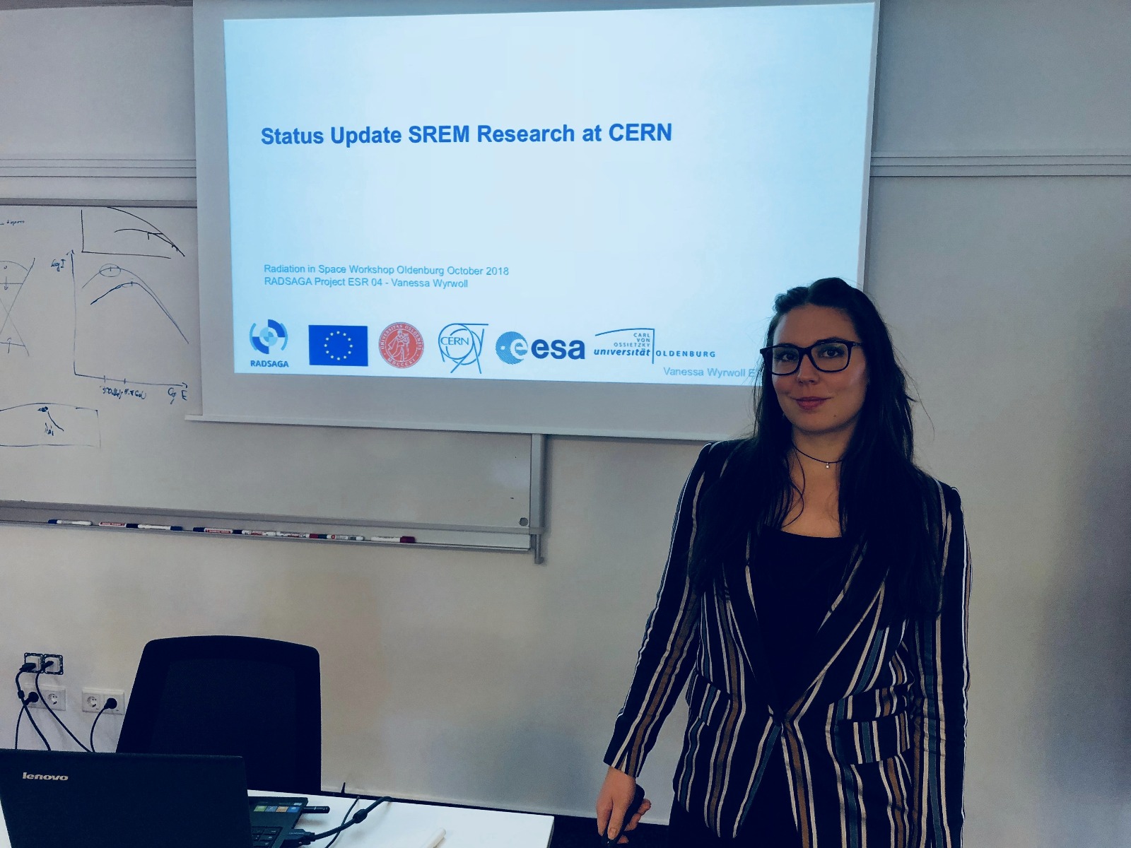Vanessa Wyrwoll (ESR4) attended the "Radiation in Space - SREM" workshop held in the Department of Medical Physics at the University of Oldenburg, Germany on October 8th - 9th. The workshop was dedicated to the Standard Radiation Environment Monitor (SREM) and enabled the possibility to discuss the latest results and next steps in research. Several contributions to the workshop were provided by many experts coming from the Astrophysics Department of the University of Kiel, Germany, Astrophysics and Medical Physics Departments at KVI Groningen, Netherlands as well as the European Space Agency (ESA). Vanessa also had the contribution which closed the workshop. She's been working extensively with SREM over the past months and had the chance to calibrate it in the SPS North Area Experimental Area under Ultra Energetic Heavy Ions.